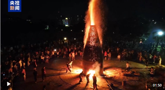看完了舞“火龙”,再来了解一下佛山过中秋的另一个不能少的民俗活动——烧番塔,这一民俗活动同样有着数百年的传承历史。烧番塔是人们祈求风调雨顺、生活幸福的重要传统民俗,番塔中的火苗高高燃起,寓意吉祥好运,火苗升得越高、火星越多,则表示越吉祥。