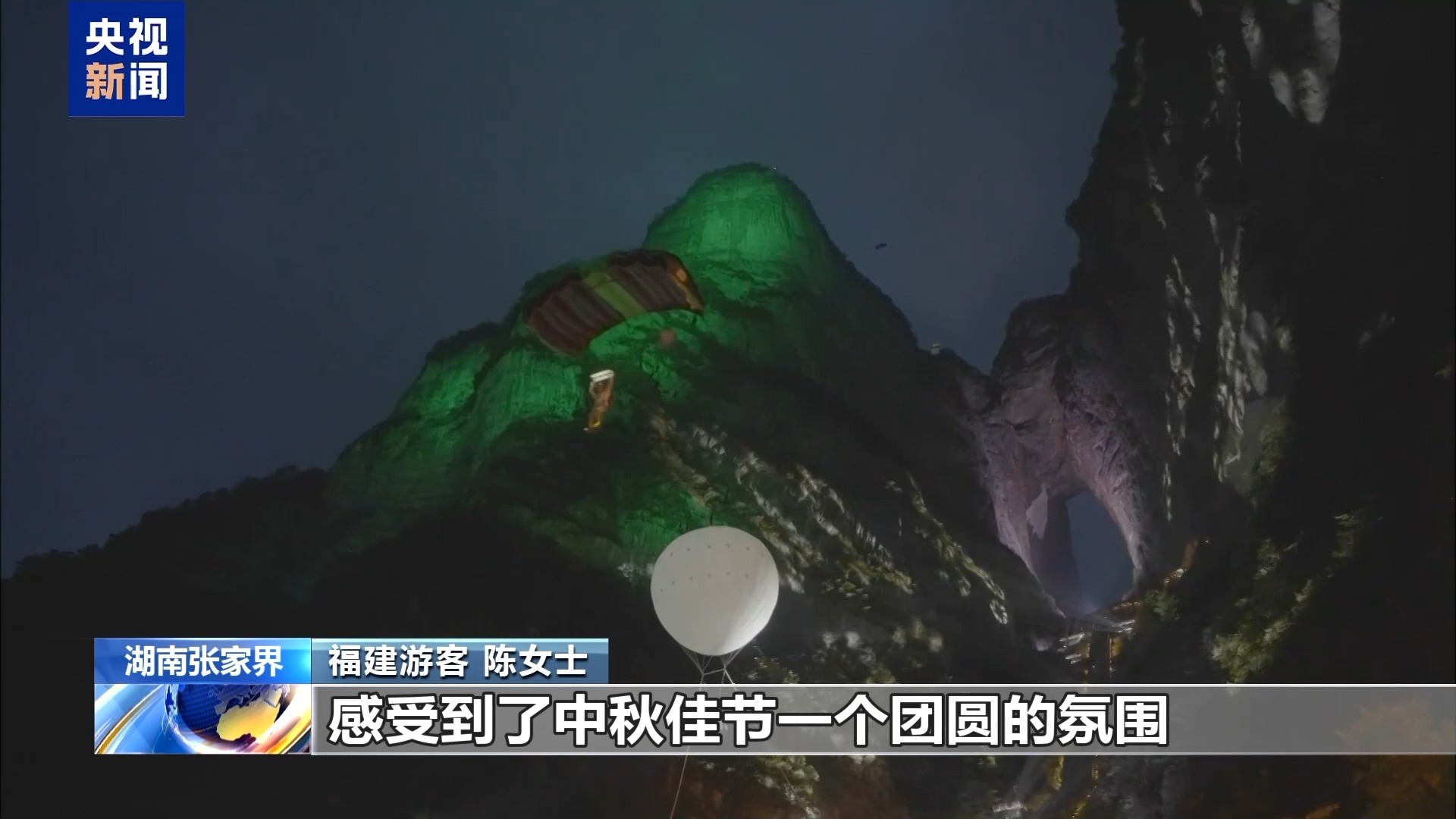 在湖南张家界天门山国家森林公园,传统文化和极限运动产生碰撞,赏月奇妙夜活动,让中外游客乐享别样假期。
