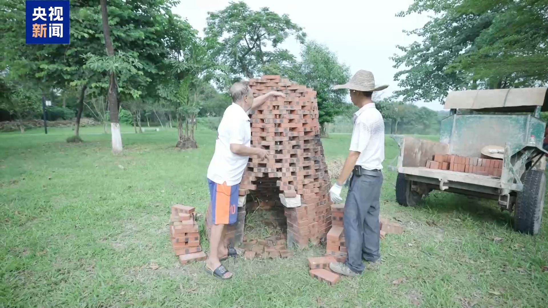 中秋节前,广东佛山仙岗村的午后也热闹了起来。空旷的草地上,孩子们与叔父们在一起砌番塔。番塔用砖头砌成,围叠而上,塔身逐渐收小,塔四周的小洞能使空气对流和冒出火焰。