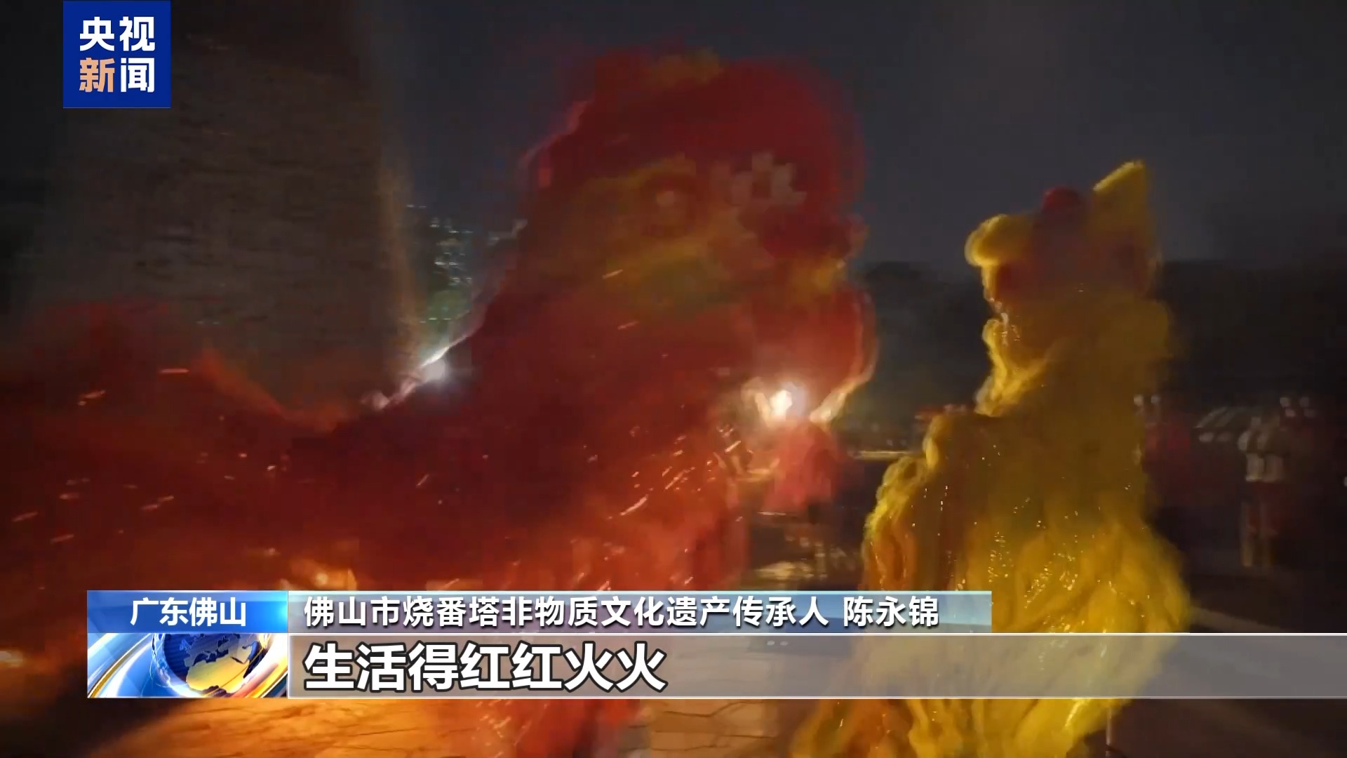 佛山市烧番塔非物质文化遗产传承人 陈永锦:“番塔”就是这样,每年加一层砖,一年加一层,意味着一年比一年高,希望生活一天比一天好。
