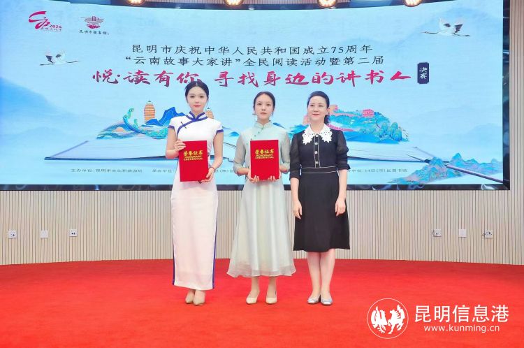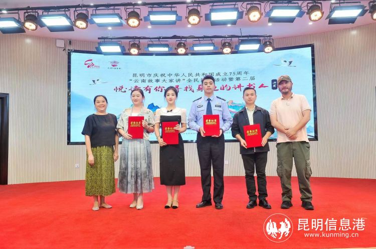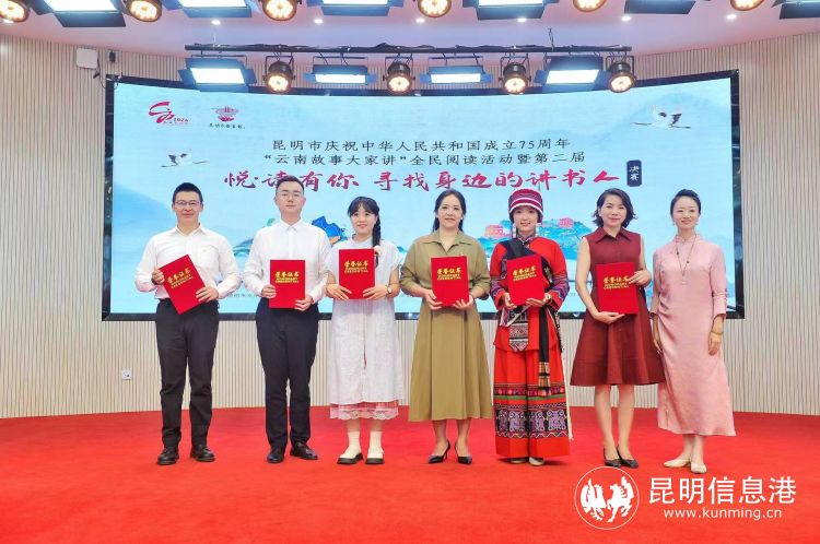 昆明信息港讯 记者王素晶 为深入学习贯彻习近平文化思想,充分发挥各级公共图 书馆弘扬社会主义核心价值观主阵地作用,热烈庆祝中华人民共和国成立75周年,全面展示新时代公共文化服务体系建设成效,2024年9月19日,由昆明市文化和旅游局主办,昆明市图书馆、昆明市图书馆学会、14县(市)区文化和旅游局、阳宗海风景名胜区文化和旅游局承办,14县(市)区图书馆协办,云南红动文化传播有限公司策划执行的昆明市庆祝中华人民共和国成立75周年——“云南故事大家讲”全民阅读活动暨公共图书馆第二届“悦•读有你——寻找身边的讲书人”市级决赛在昆明市图书馆圆满落幕。