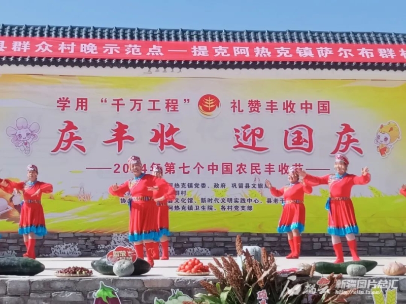 9月20日,伊犁哈萨克自治州巩留县提克阿热克镇举办“庆丰收·迎国庆·赏非遗”群众文艺展演活动,图为演出现场。杜丽娜摄