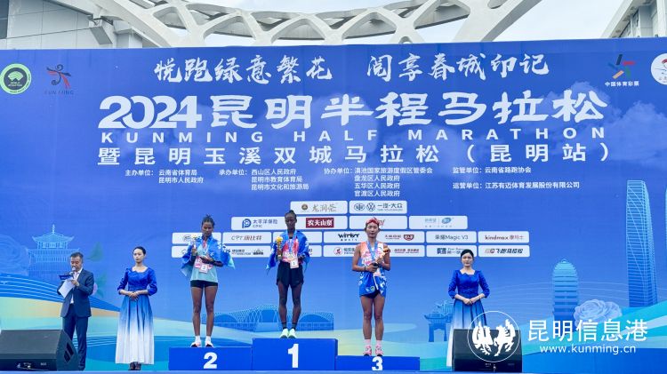 女子组来自埃塞俄比亚的GEBRESLASIE BERIHA GEBREYOHANES以01:15:28的成绩成功夺得2024昆马半程马拉松暨昆明玉溪双城马拉松(昆明站)女子组冠军,SEBA LAKECH GIRMA以01.17:24的成绩获得亚军,罗霞则以01:20:04的成绩获得季军。