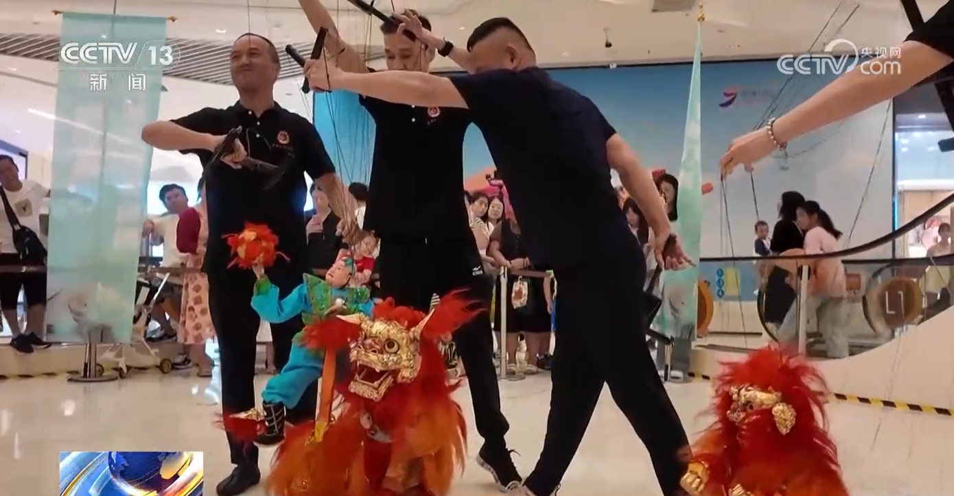 区别于大剧院舞台表演,小剧场表演更强调与观众之间面对面互动。广场上,不少市民偶遇了一场木偶戏表演,还可以和木偶零距离互动。只见表演者轻轻拉动手中丝线,精致小巧的木偶便跃动起来,活灵活现,栩栩如生。