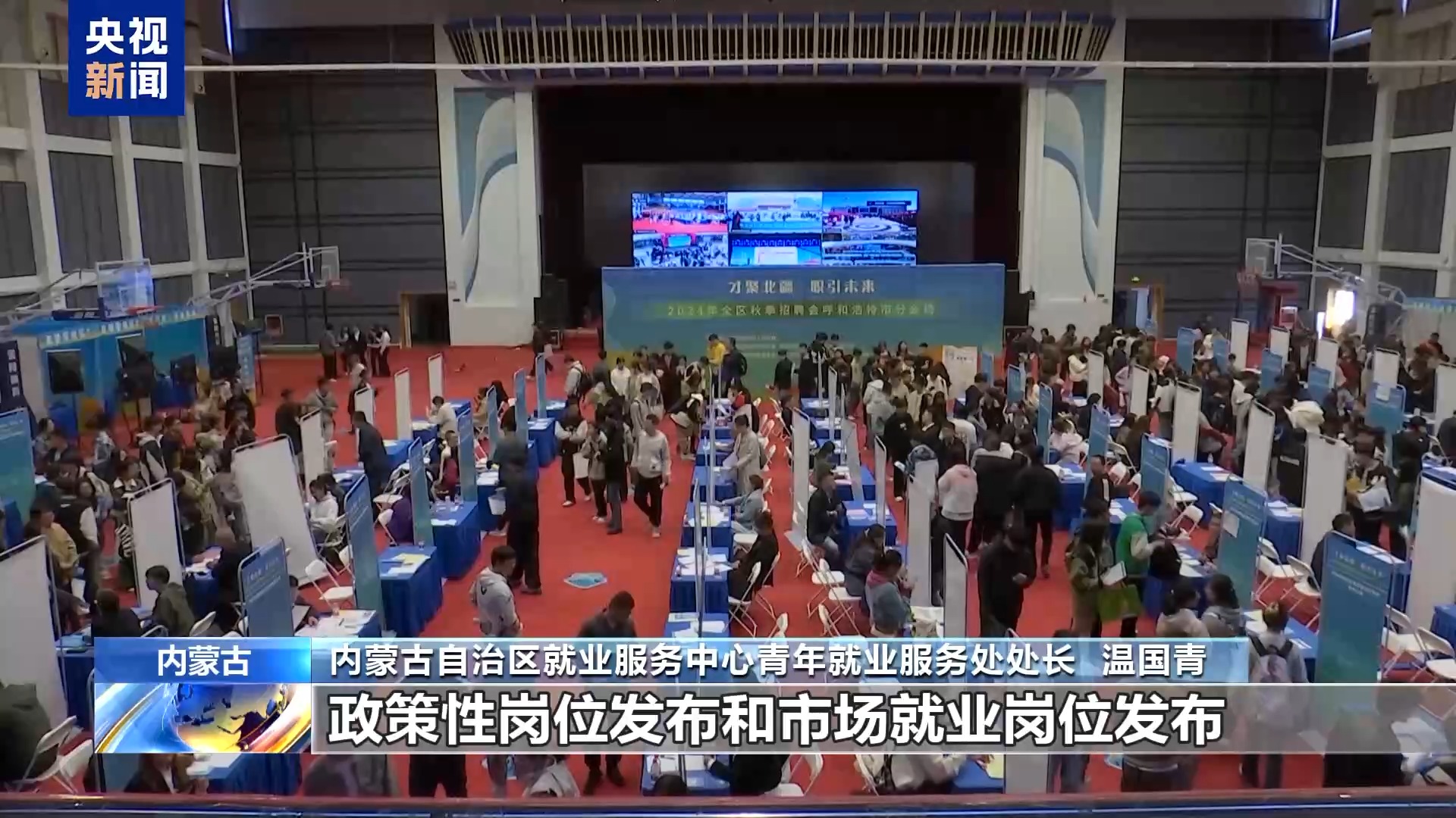 内蒙古自治区就业服务中心青年就业服务处处长 温国青:与以往招聘会不同的是,政策性岗位发布和市场就业岗位发布两项工作融合开展。