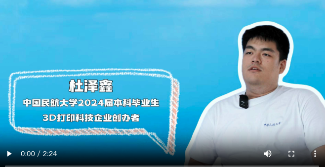 杜泽鑫,中国民航大学2024届本科毕业生。大学期间,曾沉迷游戏和短视频的他,一次偶然机会对3D打印技术产生浓厚兴趣,并逐渐发展成为事业目标。2021年,他带领团队开始创业,三年间完成了从设备研究到技术应用、软件开发的发展布局,企业先后荣获了“天津市雏鹰企业”、国家级科技中小型企业(认证)等多项荣誉。创新始于热爱,创业来源于坚持。杜泽鑫说,如今,企业所在的中国民航大学科技园加入到了天开园发展规划中,为他们提供了更好的政策扶持与更广阔的发展舞台,未来他将坚持不懈、砥砺前行,在科创报国的道路上坚定地走下去。