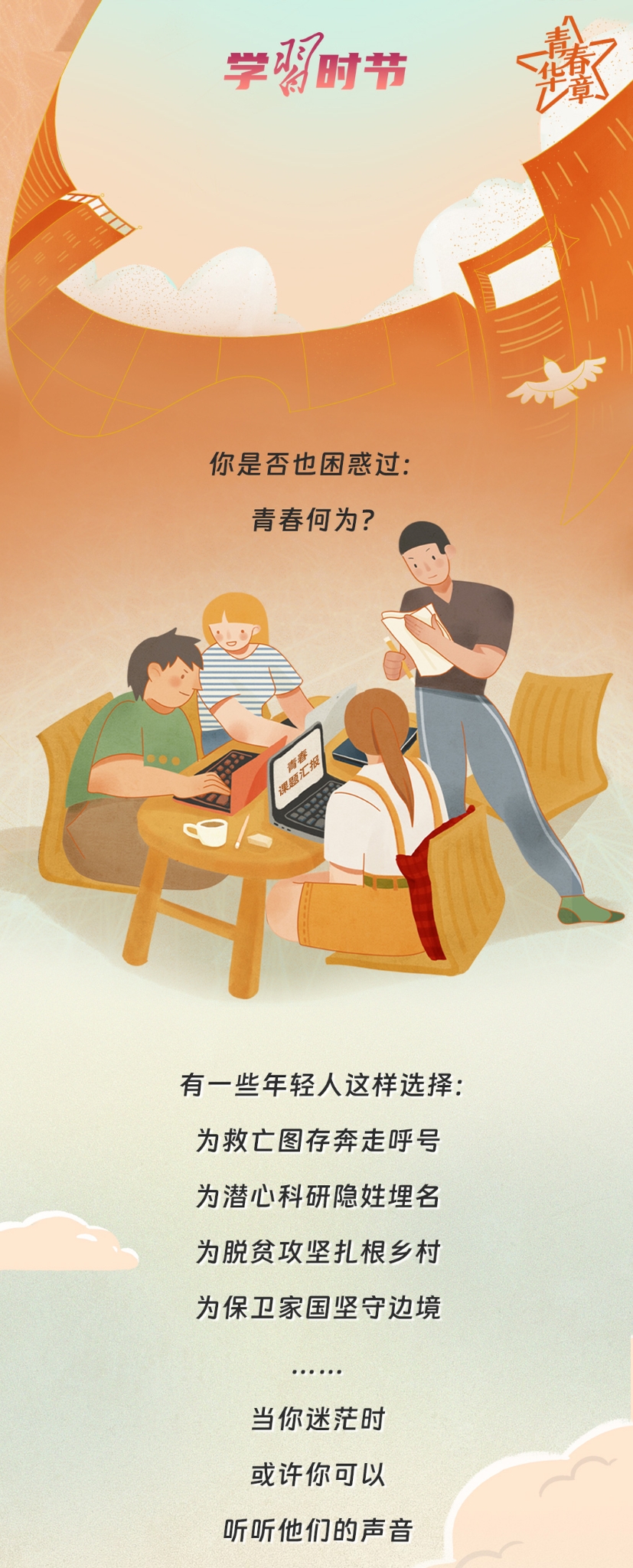 时代的每一次前行,都闪耀着青年奋勇拼搏的身影。一代又一代的中国青年满怀对祖国和人民的赤子之心,积极投身党领导的伟大事业,为人民战斗、为祖国献身、为幸福生活奋斗,用行动奋力践行着自己的青春宣言。