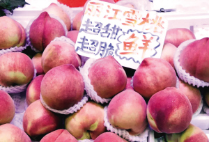 丽江雪桃生长在雪域高原,生长期长,成熟期晚,产量较少,不但具有很强的观赏性,口感也极佳,连续数年荣登国宴餐桌,属于稀有的高档水果,被称为“来自玉龙雪山下的圣果”。咬上一口,浓郁的蜜汁桃香使人神清气爽,身心有似玉龙雪山的冰清玉洁之感。