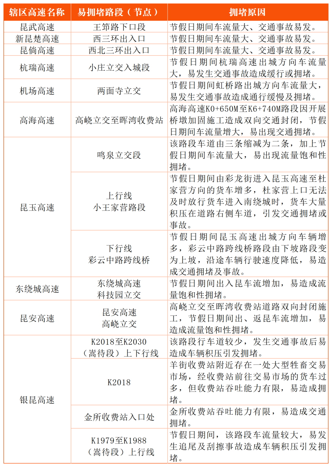 四、昆明周边道路易拥堵路段