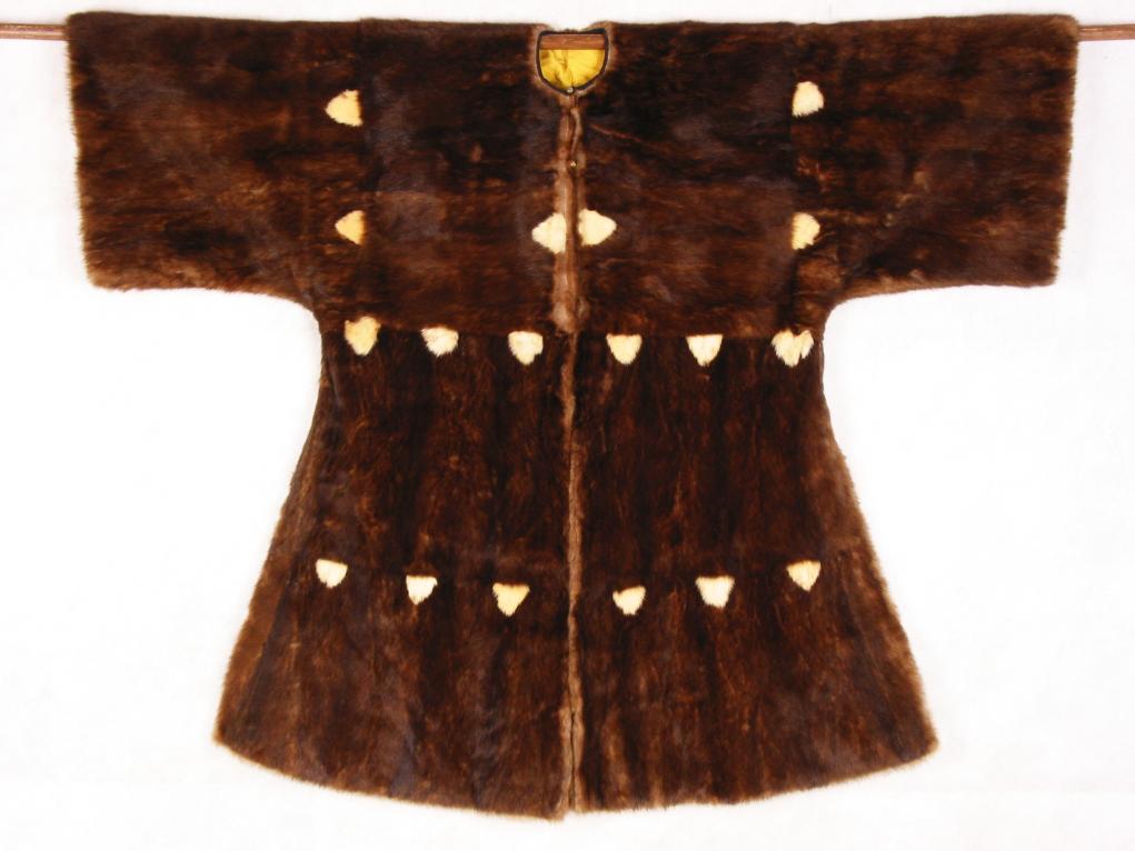 盛京围场除作为狩猎场所之外,主要作用还有为清宫“贡鲜”,即向清宫提供鹿、狍等猎物,以及将其加工后制成的各种制品。这也是盛京围场不同于其他围场之处。展览中展出多件由鹿皮、貂皮制成的配饰、服饰,如“清梅花鹿皮行裳”“清紫缎兰花纹白狐皮马褂”“清明黄色绸貂皮褂”等。