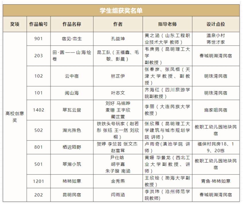 翠湖畔的教职工幼儿园地块民宿,因其地处昆明文脉核心区的绝佳优势,充分激发了选手的创作潜力,产生了5件获奖作品,将老昆明民国风设计元素与现代设计完美融合的《翠堤春晓》,希望在翠湖畔打造一个可以放空的成人幼儿园、邀请游客“返校”的《园又翠,翠湖畔的成人幼儿园》,每一份作品,都是对“自在昆明”的生动诠释。