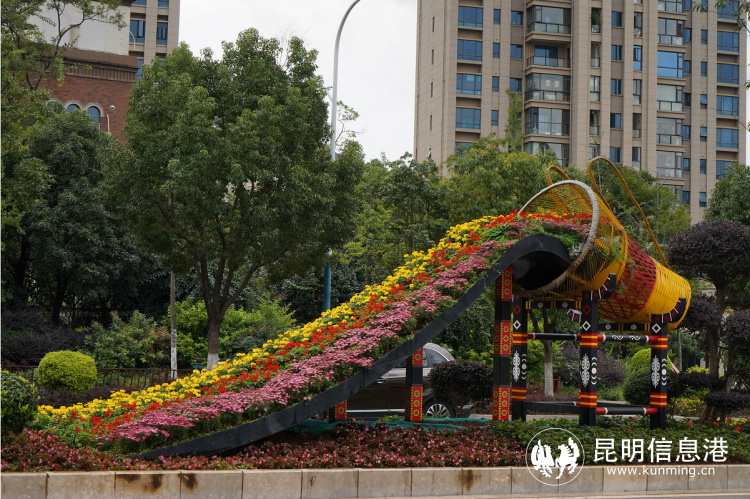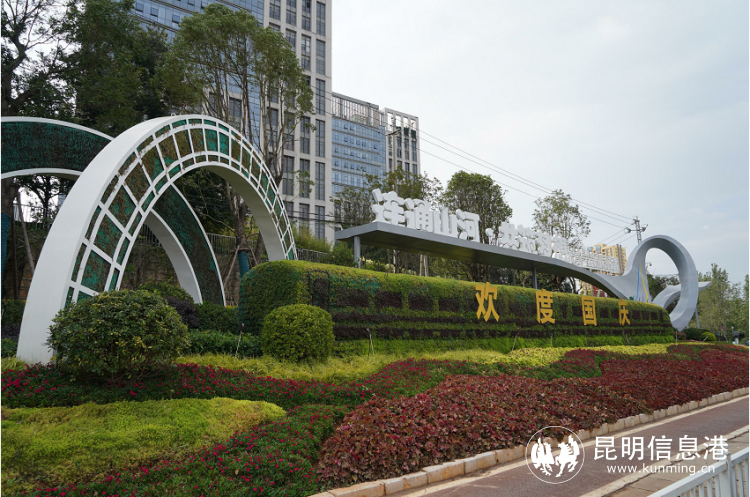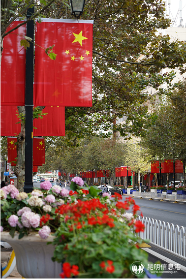昆明信息港讯 记者杨雁 近日,漫步昆明大街小巷,花香四溢,满眼缤纷,喜迎国庆的鲜明主题、独具特色的立体花坛、五彩斑斓的美丽花海……在中华人民共和国75周年华诞即将到来之际,昆明各大城市广场、步行街区、重要交通节点、出入场站等区域花团锦簇,装扮一新,处处洋溢着热烈欢乐祥和的节日氛围。