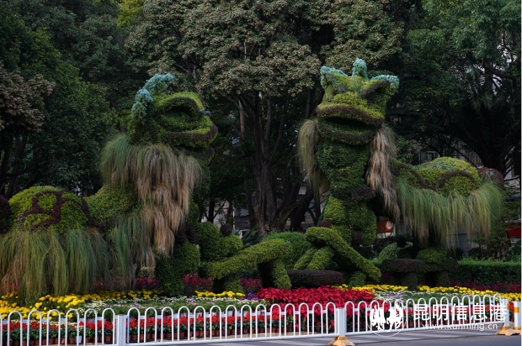 官渡区在滇池国际会展中心打造“象往云南”主题立体花坛,更换五色草、一串红、矾根等园林植物,体现云南生物多样性特色,烘托节日氛围。