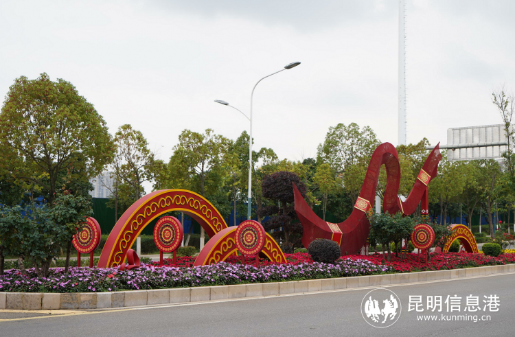 经开区在春漫大道、石龙路沿线进行时令花卉更换,在道路重要节点打造花境并设置立体花坛;在纳源路以滇越铁路连通两国友谊为主题,设置高铁造型的立体花坛;在观山公园采用时令花卉更换,彩旗设置等方式营造欢乐祥和的节日氛围。