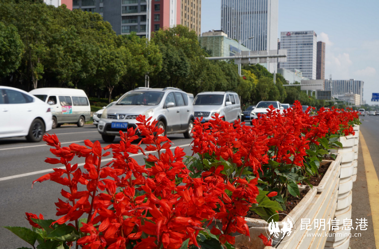 西山区在广福路、滇池路重要区域设置立体花坛和斜面花墙,更换时令花卉一串红、万寿菊、新几内亚凤仙等,并对道路中央分车带花箱和紫苑小游园更换时令花卉。
