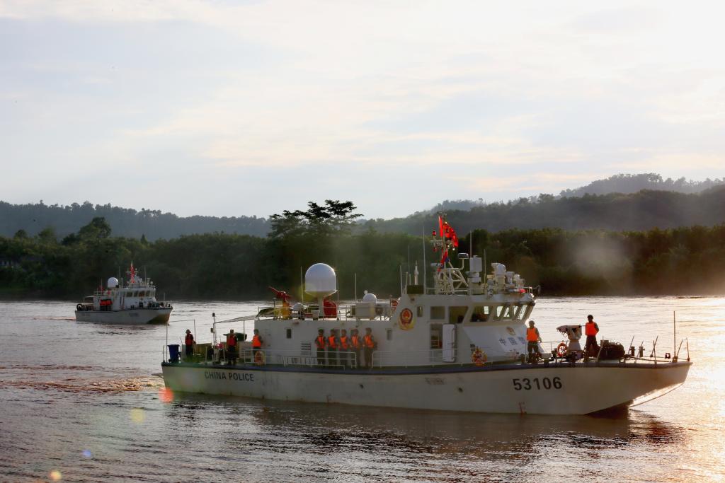 参加第145次中老缅泰湄公河联合巡逻执法行动的中方执法艇在湄公河上巡逻执法。(云南省公安厅新闻办供图)