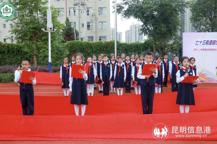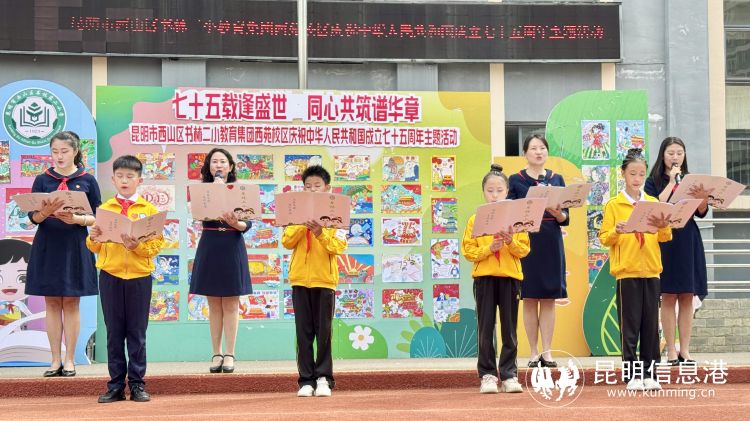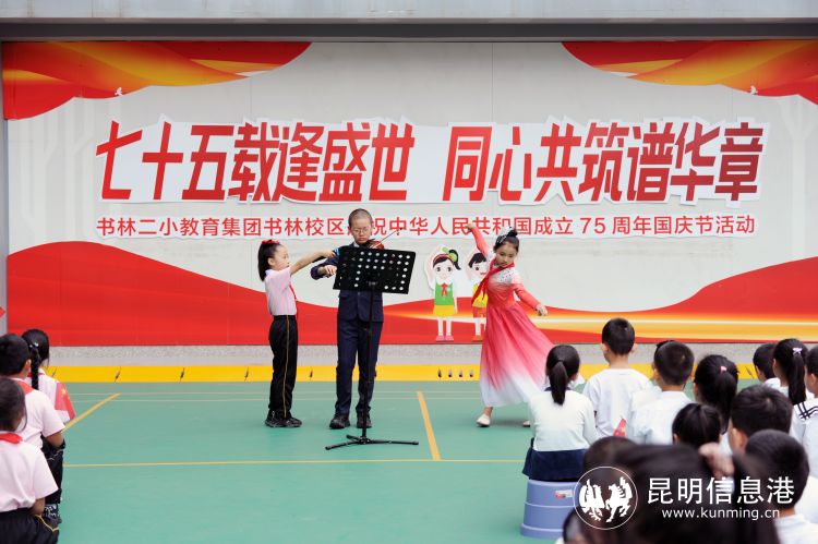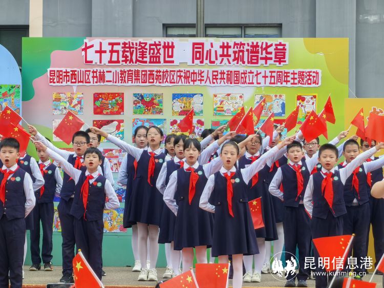 昆明信息港讯 记者上官艳君 金秋十月颂华诞,举国欢腾迎国庆。9月30日,昆明市西山区书林二小教育集团三校区同步举办以“七十五载逢盛世,同心共筑谱华章”为主题的庆祝活动,献礼祖国75周年华诞。