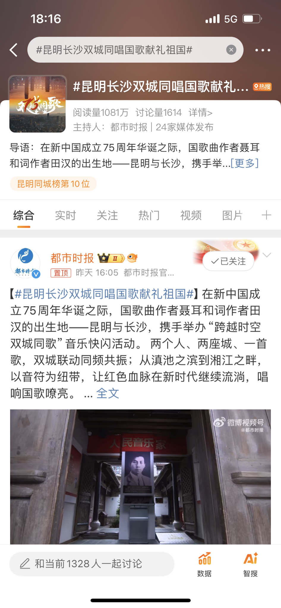 #昆明长沙双城同唱国歌献礼祖国#的话题