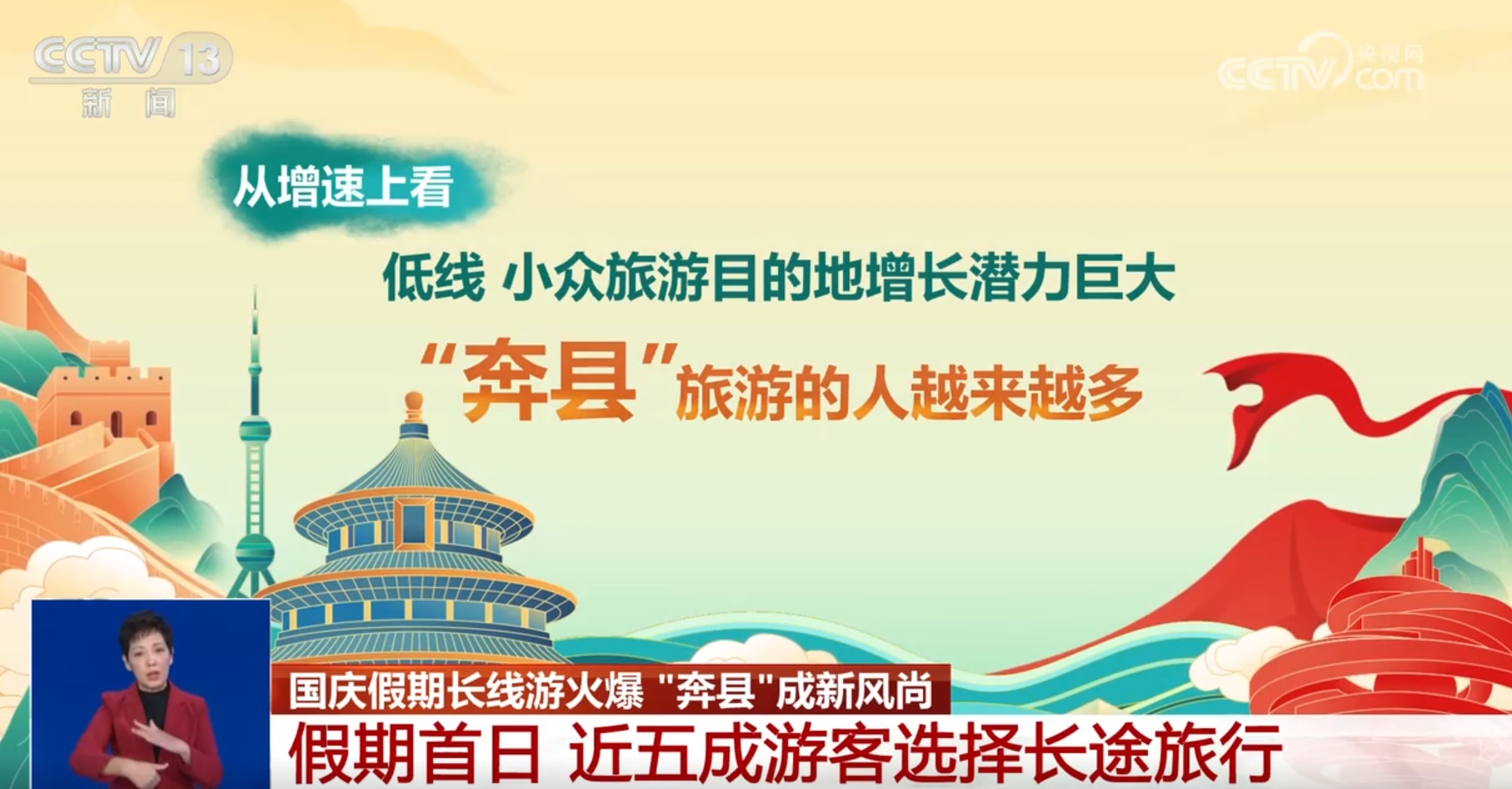 从增速上看,低线、小众旅游目的地增长潜力巨大,“奔县”旅游的人越来越多。九寨沟、安吉、香格里拉、平潭、都江堰、景洪等县级市和县城在国庆首日都分别实现订单109%、86%、74%、67%、51%、50%的增长。