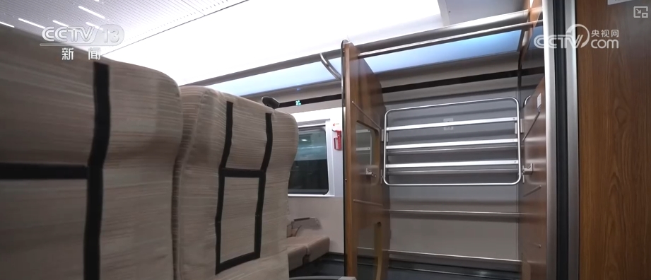 首先,它的座椅从过去的18排增加到了19排,载客能力大大提升。其次,每一节车厢都增加了一个大的行李架,旅客存放行李的空间也相应增加。在车身长度保持不变的前提下,多出来的空间从哪里来?电气柜和过去相比瘦身了不少,还有一些基础设施改到了车下,这样车厢的使用空间大大增加了。