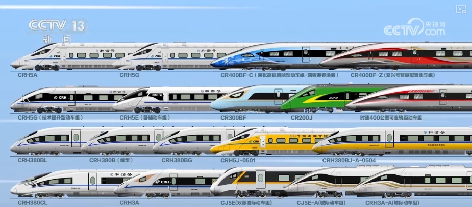 中车长客生产的动车组其实远不只这一型,它们是个“大家族”。从时速160公里到350公里,从8辆编组到17辆编组,从标准型到智能型,20多种车型见证了中国高铁动车组从无到有,从追赶到领跑的进程。