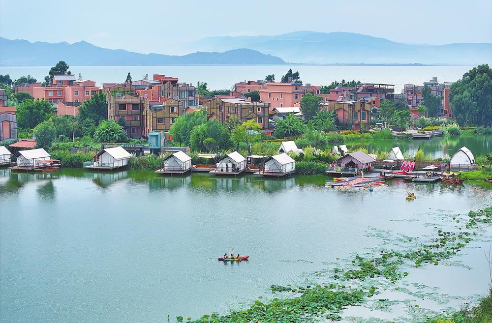 沿环湖路一路往南,可至晋宁区上蒜镇牛恋小渔村,与自然浑然一体的乡野民居、星罗棋布的湿地景观、环绕村庄的肥美水草格外吸睛。无独有偶,牛恋小渔村通过腾退荒滩、河床、坝塘等公共面积超2000平方米,顺利实施村庄人居环境提升、雨污分流等工程。“村庄越来越靓了,还成功入选2023年中国美丽休闲乡村。” 牛恋小渔村CEO徐曦说。