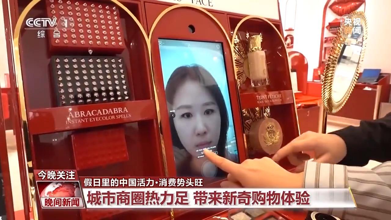 在四川成都,一家大型商场的裸眼3D大屏换上了国庆新装,身临其境的原始森林、被满天繁星包裹,吸引了许多游客前来打卡。现场更有虚拟试妆、虚拟试鞋、智能导购等等前沿科技带来的新奇购物体验。