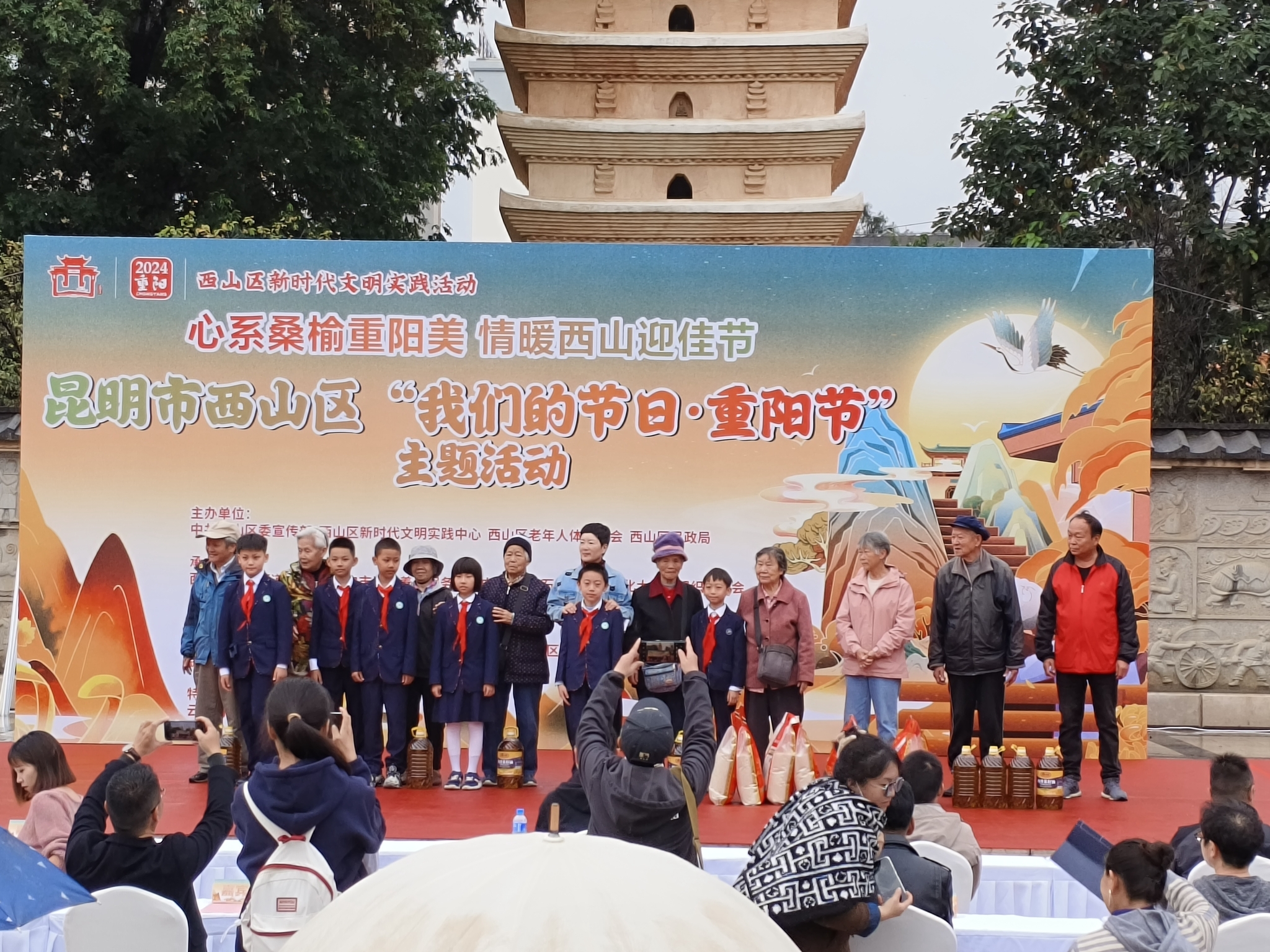 昆明信息港讯 记者杨锦佳 实习生尤贵玲 通讯员潘鑫 10月11日,“心系桑榆重阳美 情暖西山迎佳节” ——昆明市西山区“我们的节日·重阳节”主题活动,在金碧街道西寺塔广场举行。此次活动旨在弘扬中华民族尊老敬老的传统美德,营造浓厚的节日氛围,进一步丰富老年人的精神文化生活,增强社区老年人的幸福感。
