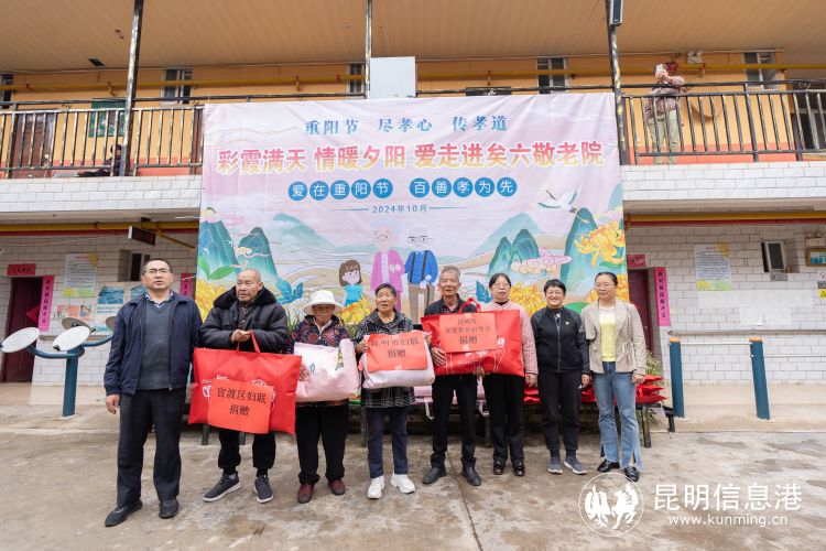昆明信息港讯 记者李红鸾 金秋送爽,岁岁重阳。在重阳节即将来临之际,昆明市妇联联合官渡区妇联、昆明市家庭教育研究会到官渡区矣六敬老院开展“九九重阳节 浓浓敬老情”家庭文明实践暨主题党日活动,用实际行动弘扬尊老、爱老、敬老的中华民族传统美德。