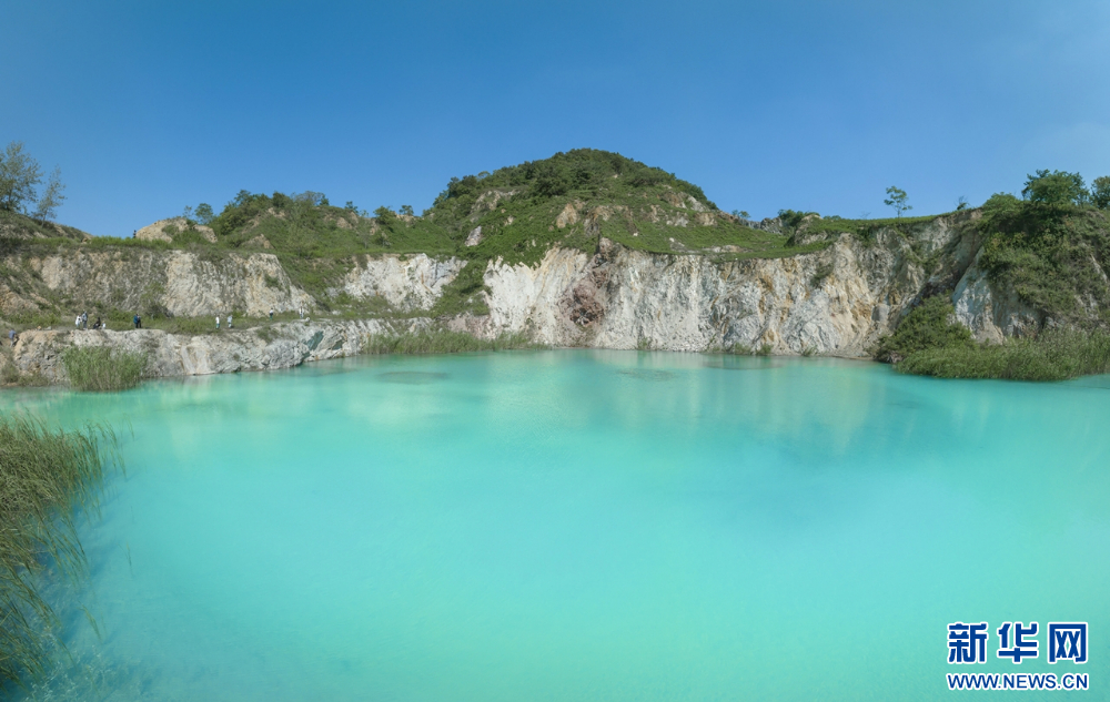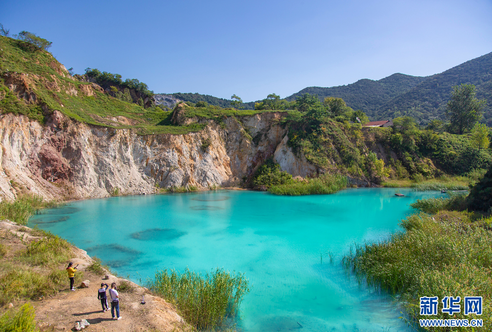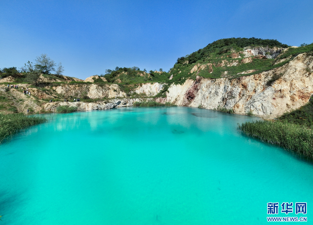 近日,南京江宁伏牛山在秋高气爽中展现出令人沉醉的美景。伏牛山的矿坑小蓝湖,仿佛群山中的一颗璀璨蓝宝石,微风拂过,湖面泛起层层涟漪,如同大自然灵动的笔触,书写美丽画卷。(沙芳如 刘伟)