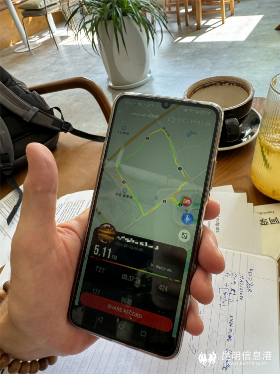 迈克尔展示9月26日的晨跑记录。记者谭石艳/摄