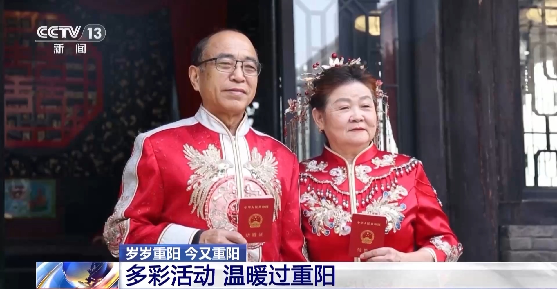 山东淄博周村区举办了“再囍一次 定格最美夕阳红”活动,用相机记录金婚老人的浪漫爱情,留住最美一刻,表达对老人们的祝福和敬意。