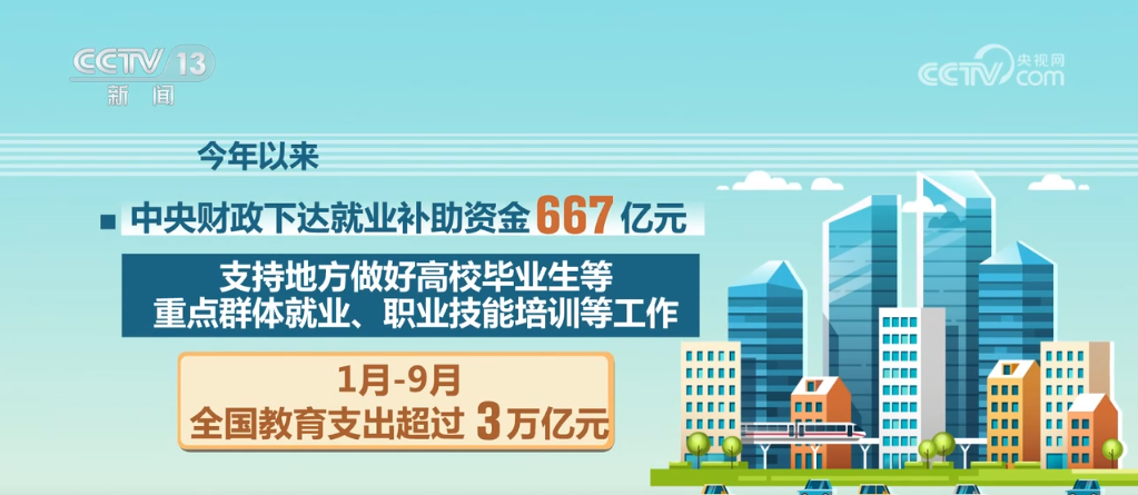 基本民生和重点领域的经费保障关注度较高。发布会上,财政部副部长廖岷表示,今年以来,中央财政下达就业补助资金667亿元,支持地方做好高校毕业生等重点群体就业、职业技能培训等工作。1—9月,全国教育支出超过3万亿元。按照全国总体3%的比例,提高退休人员基本养老金水平,大幅提高城乡居民基础养老金的最低标准。将基本公共卫生服务经费的财政补助标准提高到每人每年94元,城乡居民基本医疗保险的财政补助标准提高至每人每年670元。廖岷还表示,正在积极研究出台政策措施,促进房地产市场供需平衡,推动房地产行业平稳健康发展。