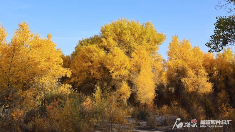 金秋十月,新疆各地胡杨林逐渐金黄一片,在蓝天的映衬下,呈现出油画般浓烈的色彩。“碧云天,黄叶地,秋色连波”的秋日限定视觉盛宴已开启,各地纷纷推出丰富多样的活动,胡杨树下的音乐会、胡杨林间的骑行、徒步比赛、美食活动、农民画展、服装秀……吸引疆内外游客共赴胡杨之约。