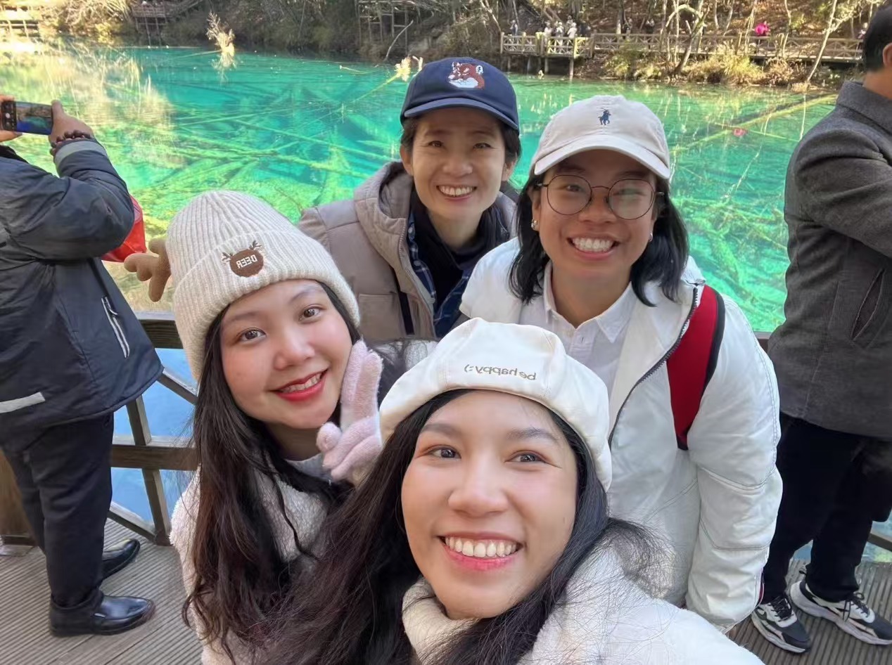 刘玉凤与朋友在四川九寨沟游玩。供图