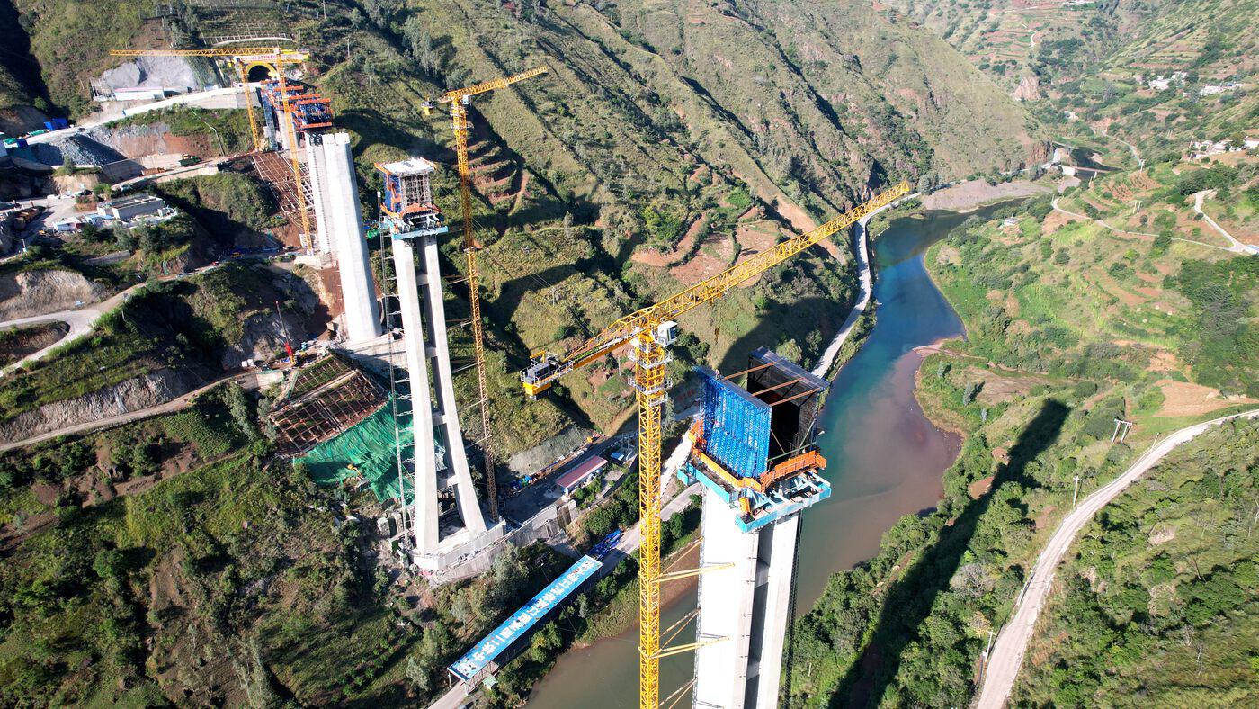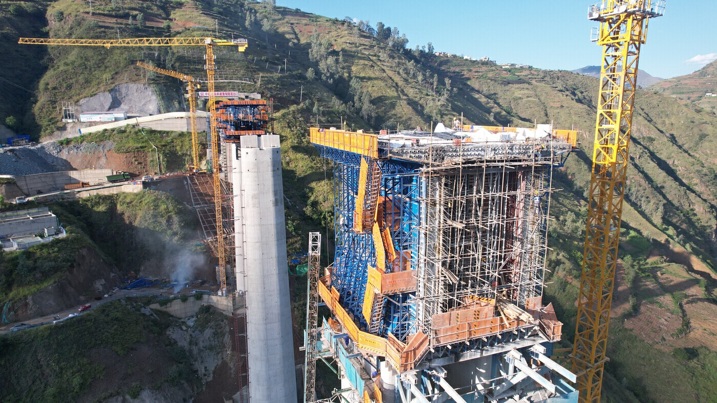 大桥横跨牛栏江上游国家II级水源保护区,两侧山体呈V型地貌。施工过程中,项目部不断优化施工方案,先后克服了施工区域地势极端陡峭、环水保要求严格、高墩施工坠落风险高、墩身结构形式多样化、技术难度大等难题,各项建设正如火如荼地有序推进。