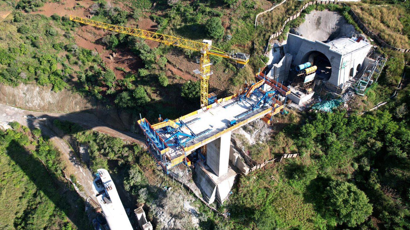 10月17日,记者在渝昆高铁江底牛栏江特大桥施工现场了解到,随着主桥墩的顺利封顶,由中铁二局集团渝昆高铁云贵段站前三标承建的渝昆高铁江底牛栏江特大桥进入上部结构施工。截至目前,已完成桥梁主体工程总投资的71.5%。