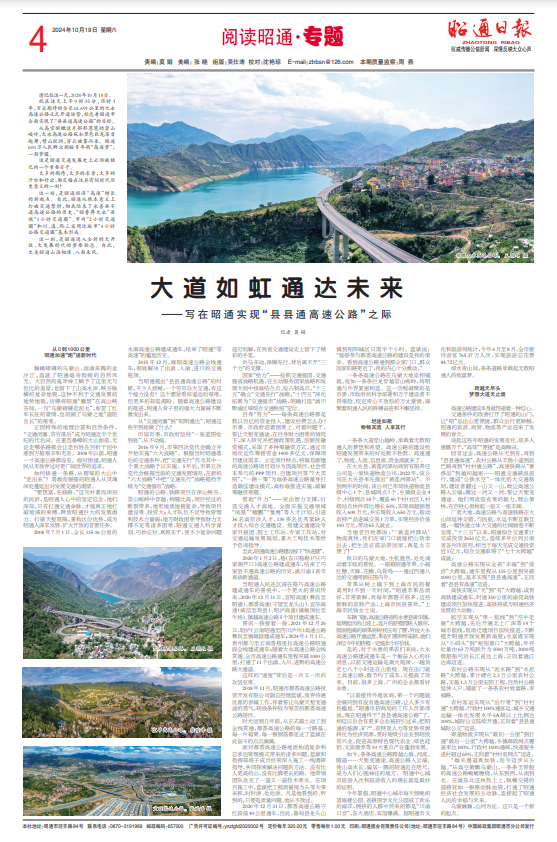 一条条大道穿山越岭,承载了无数昭通人的梦想和希望。高速公路给昭通发展带来的意义数不胜数。高速通了,物流、人流、信息流、资金流就来了。