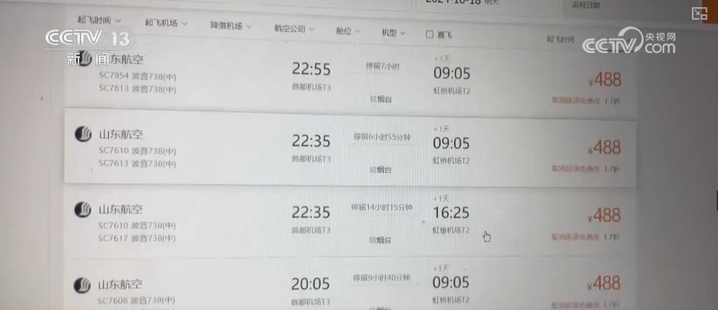 据了解,10月14日—24日国内机票平均支付价格较“十一”期间降低四成以上,甚至低于上半年的淡季价格,达到全年低点。