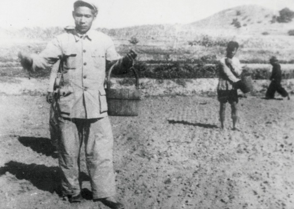 △ 谷文昌在福建省东山县坑北村参加播种。