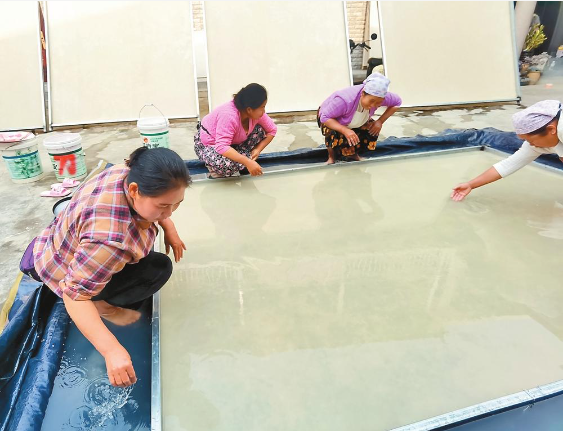 耿马傣族佤族自治县孟定镇遮哈社区芒团自然村盛产“白棉纸”,素有“中华傣家造纸第一村”的美誉。近日,在芒团村国家级非物质文化遗产传承人玉孟嘎家,一张纯手工制造、长4.2米、宽2.2米的巨型白棉纸再次展示了这项传统技艺的魅力。