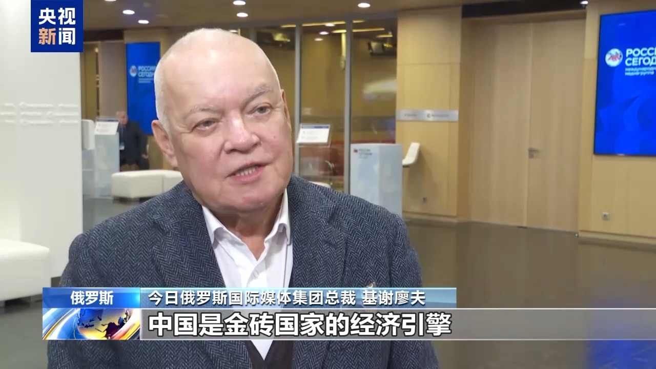 今日俄罗斯国际媒体集团总裁 基谢廖夫:中国是金砖国家的经济引擎,其他国家也作出了应有的贡献,我也非常希望金砖国家继续加强人文合作。