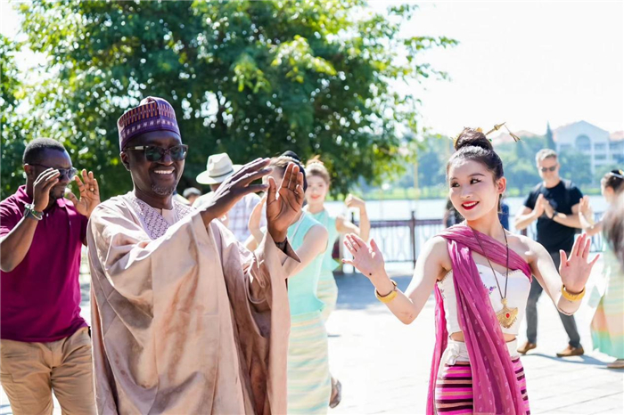 昆明滇池路七公里大转盘处,“民族大团结”雕塑引人注目,不远处便是云南民族村。造型各异的少数民族建筑、各具特色的民族服饰、热情洋溢的民族舞乐……加纳通讯社首席执行官阿尔贝特·科菲·奥乌苏加入人群,踩着鼓点起舞。他说:“在这里看到了丰富多彩的中国少数民族文化,我能感受到其中的生机与活力。”
