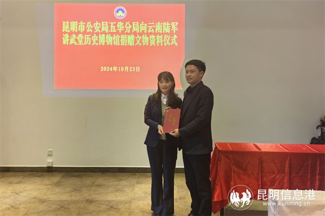 昆明信息港讯 记者江枫 通讯员方世秋 张玲玲 10月23日上午,云南陆军讲武堂历史博物馆举行捐赠仪式,接收昆明市公安局五华分局捐赠的戴自修、杨家仁、蔡铁青等人相关历史文物资料共计19件/套。