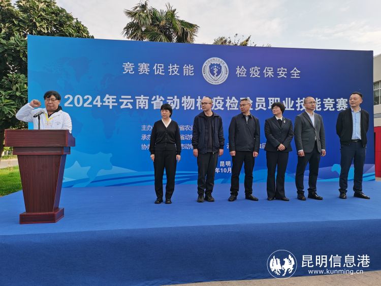昆明信息港讯记者刘相妤 动物检疫检验是维护食品安全、防控动物疫病的重要环节。10月24日,2024年云南省动物检疫检验员职业技能竞赛在昆明市成功举办,来自昆明、昭通、曲靖、玉溪等16个参赛代表队的48名动物检疫检验员参赛,通过技能较量,展现纯熟的动物检疫检验技能水准,展示全省兽医卫生人才队伍建设成果。