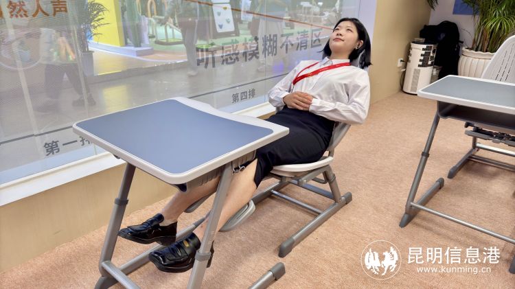 立达信公司展出的护脊健康课桌椅产品也受到参展者的热捧。“在学生听课时,立达信护脊健康课桌椅通过靠背、坐垫的人机曲度设计,有效舒缓脊柱压力,让学生轻松听课;全包裹式支撑则助力学生保持中正平衡的坐姿,预防脊柱侧弯。在学生书写学习状态时,双色分区设计能巧妙引导学生养成正确的学习姿态。”现场工作人员边演示边介绍,在午休时,这款课桌椅又变成了“躺椅”,只需一键静音操作,便能1秒从坐姿切换到躺姿,模拟零重力条件下的自然体态,让学生享受零压深度睡眠。