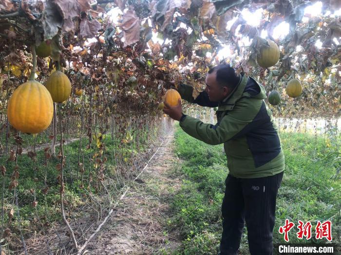 中新网新疆和田10月30日电 (陶拴科)晚秋之际,在塔克拉玛干大沙漠南缘,新疆和田地区皮山县藏桂乡的新疆徽岳记生物科技有限公司瓜蒌产业种植基地里,呈现出一派繁忙的景象。