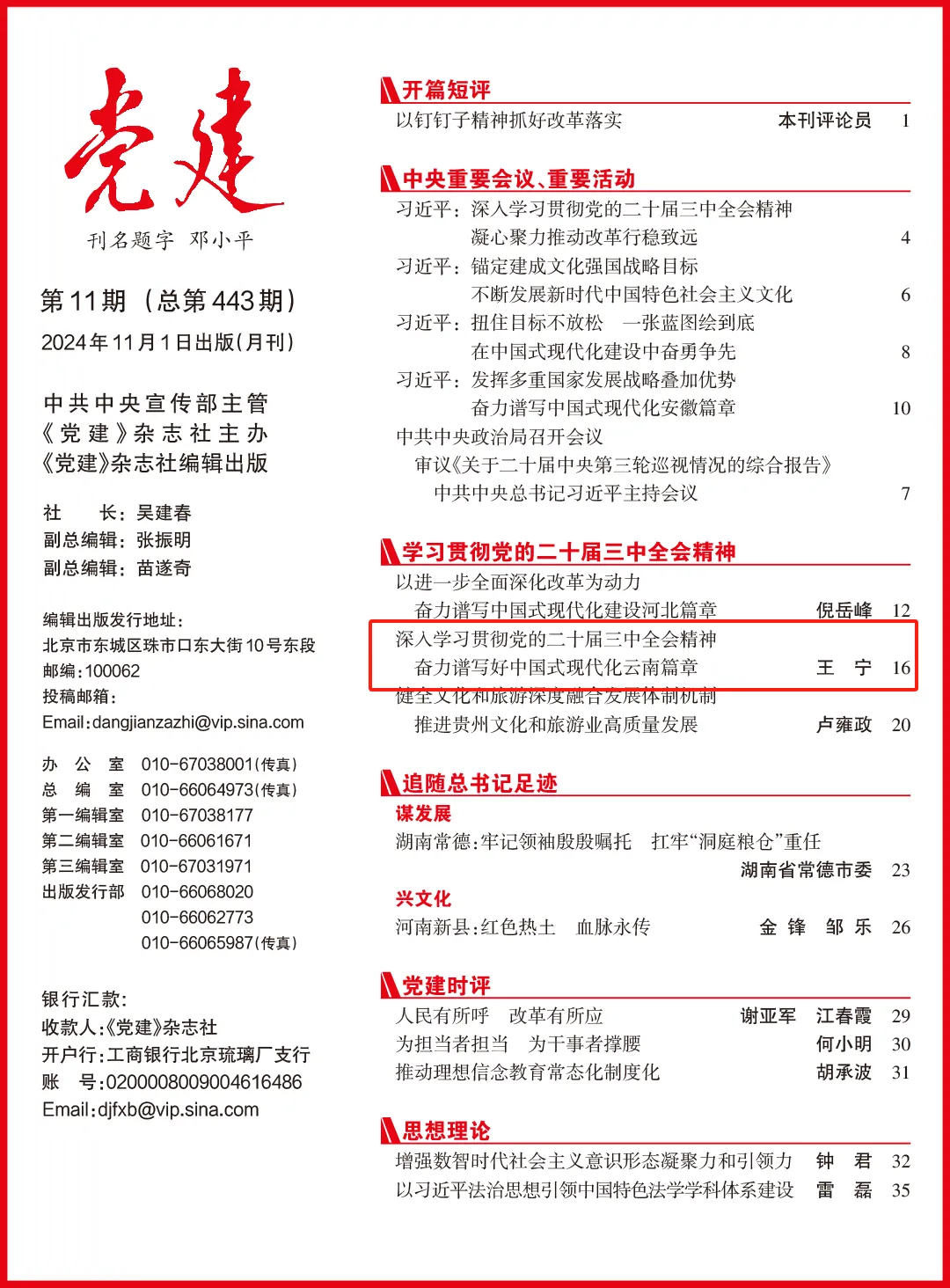 2024年第11期《党建》杂志刊发了