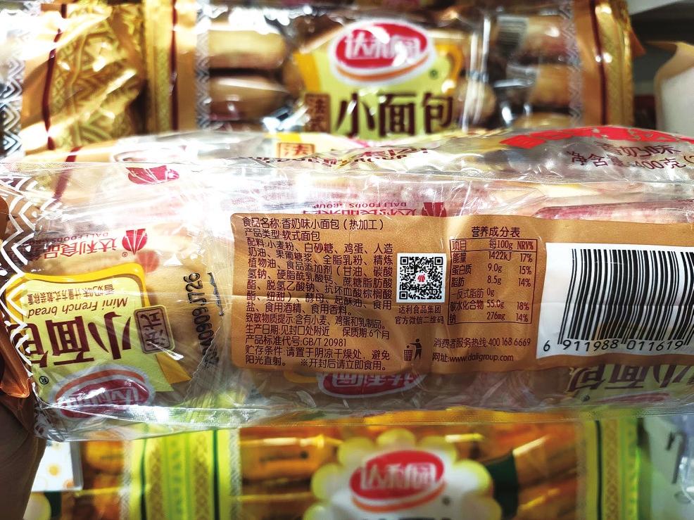 “烘焙类、面包类产品,在家庭购物中的消费频次比较高,销量也在提升。食品安全、健康饮食越来越受到人们的重视,我经常看到消费者对照配料表挑选,食品添加剂少或是配料表短的产品,往往更受欢迎,这在大家看来是更健康的表现。”一位销售人员告诉记者。