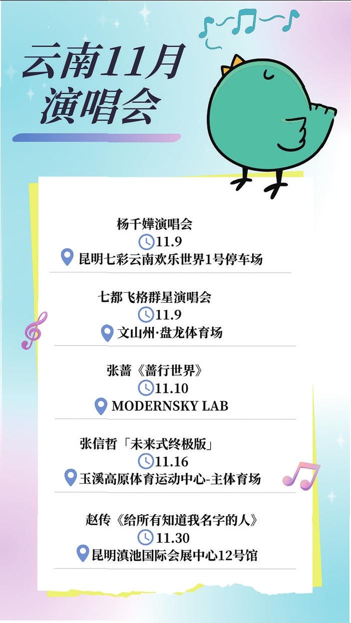 11月云南有多场演唱会